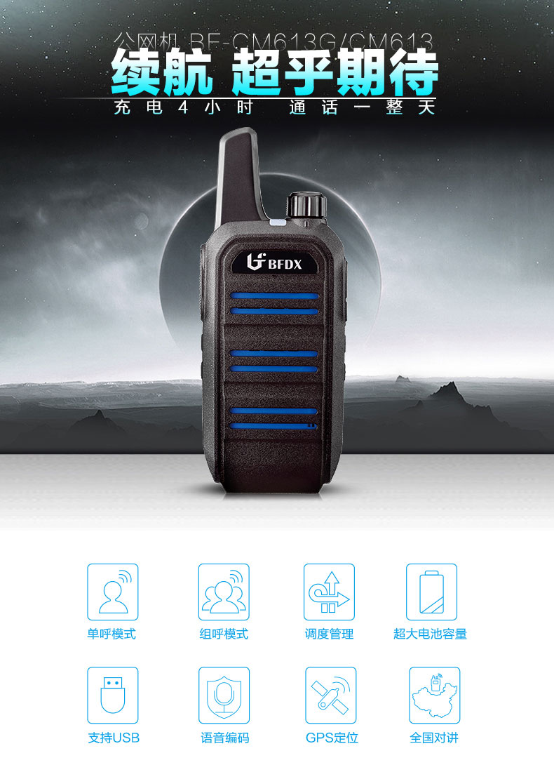 北峰公网对讲机BF-CM613结合市场通讯需求,面向远距离智慧调度、及小规模中继客户,适用于物流、路政、市政、旅游景区、多层地下综合体等行业的全新产品。