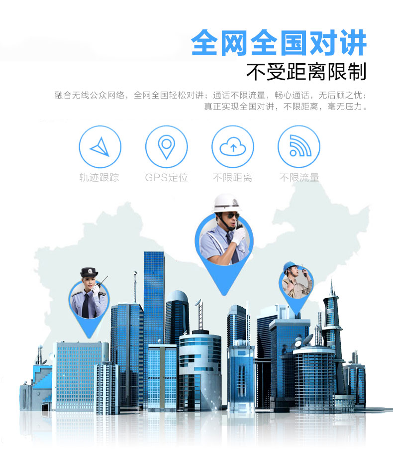 融合无线公众网络,无需自建网络,即可轻松实现全网范围内对讲。并且,通话不限流量,畅心通话,无后顾之忧。真正实现全国对讲,不限距离,毫无压力。便于各行业全国全网范围内工作调度及管理。